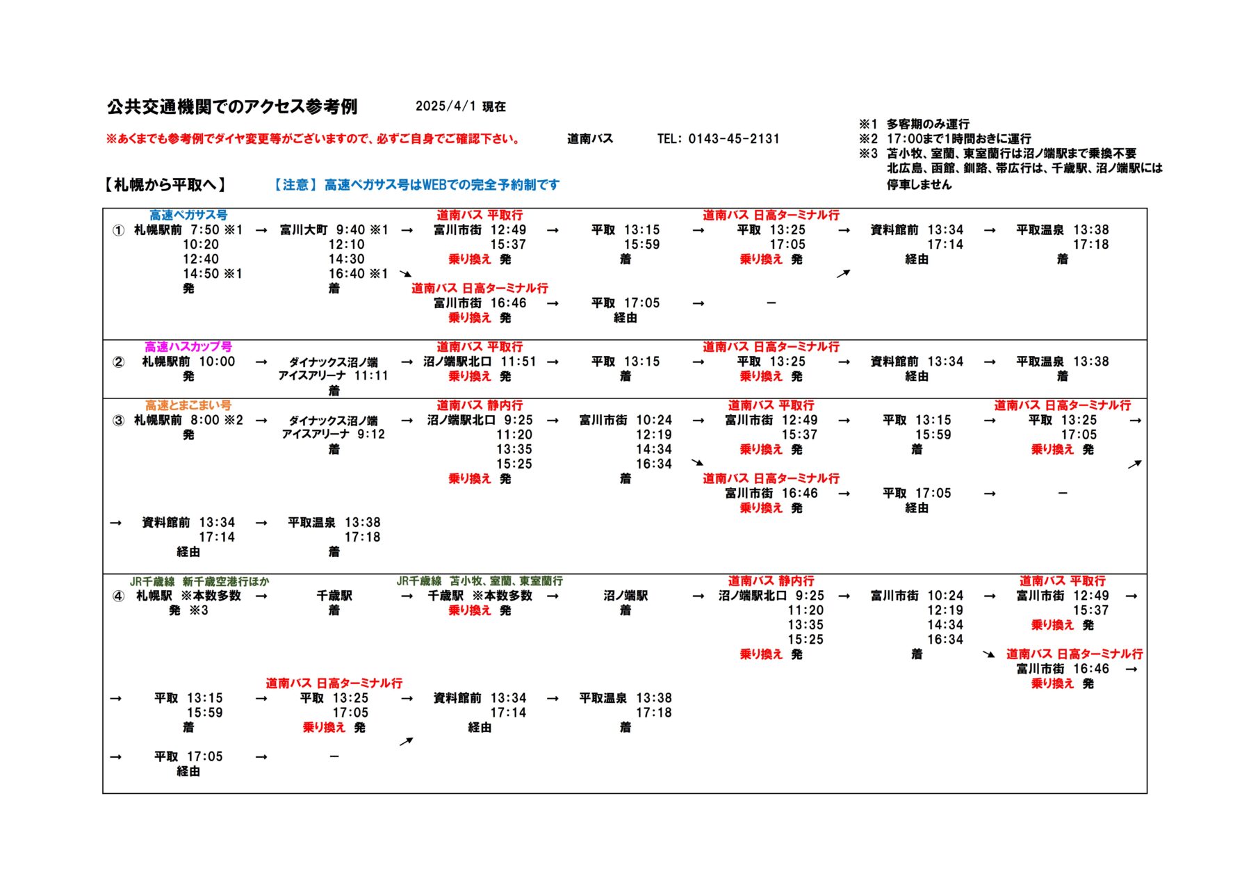 公共交通機関でのアクセス参考例(2025.4.1現在)